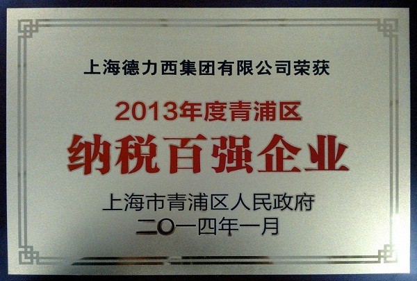 2014 年1 月24 日,2013年度青浦區(qū)納稅百強(qiáng)企業(yè)表彰會在青浦工業(yè)園區(qū)隆重舉行。青浦區(qū)委書記高亢,區(qū)委副書記、區(qū)長趙惠琴等領(lǐng)導(dǎo)出席表彰會。上海德力西集團(tuán)被授予“2013 年度上海市青浦區(qū)納稅百強(qiáng)企業(yè)”榮譽(yù)稱號。上海德力西集團(tuán)監(jiān)事會副主席林少東出席大會領(lǐng)獎。